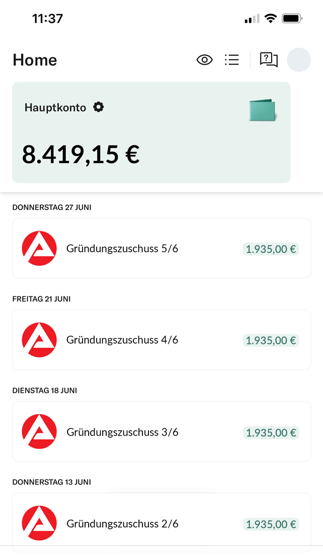Erhalte weiter Arbeitslosengeld + 300 € monatlichen Zuschuss (bis zu 15 Monate) in deiner Gründungsphase.