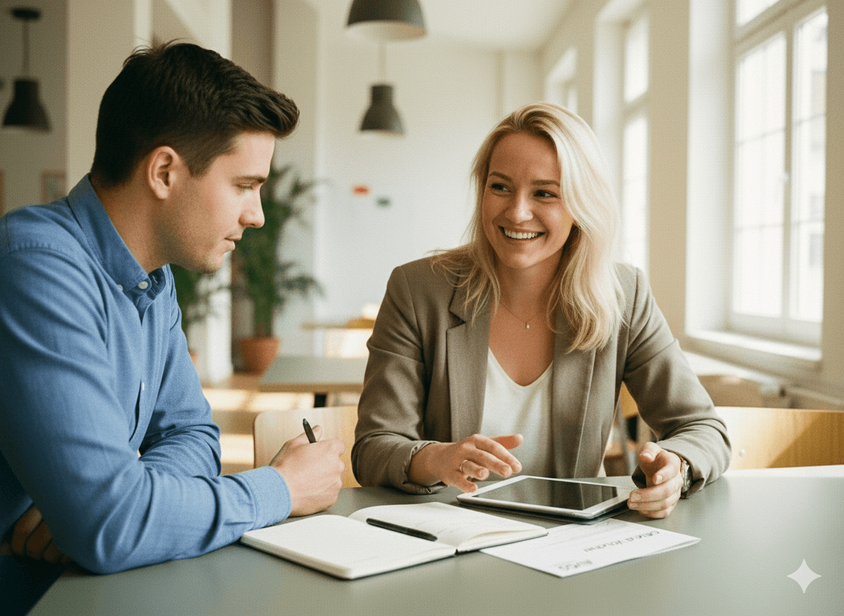 Wir begleiten dich persönlich auf deinem Gründungsweg mit zertifiziertem Gründercoaching, das über den AVGS zu 100 % gefördert wird.